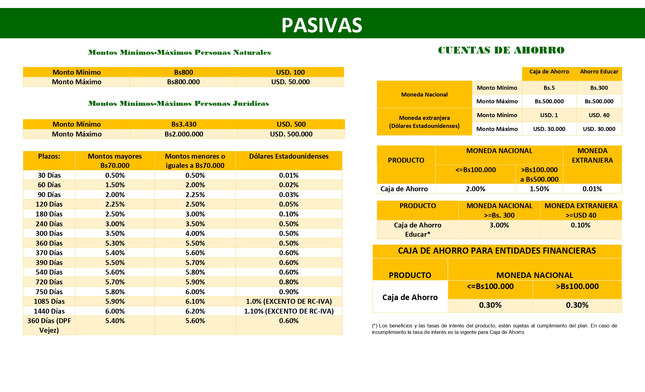 - Monto mínimo de apertura Bs. 800 o $us 100.